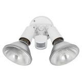 Noma 110 degree aluminum motion sensor light features an adjustable motion sensor range from 10 39 3 3 12 m halogen twin lights with motion sensor of up to 110 made of durable plastic and steel construction with a white finish.