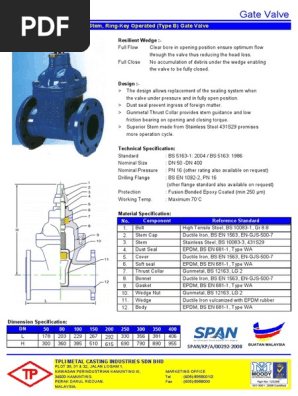 Bs 5163 specification for predominantly key operated cast iron gate valves for waterworks purposes.